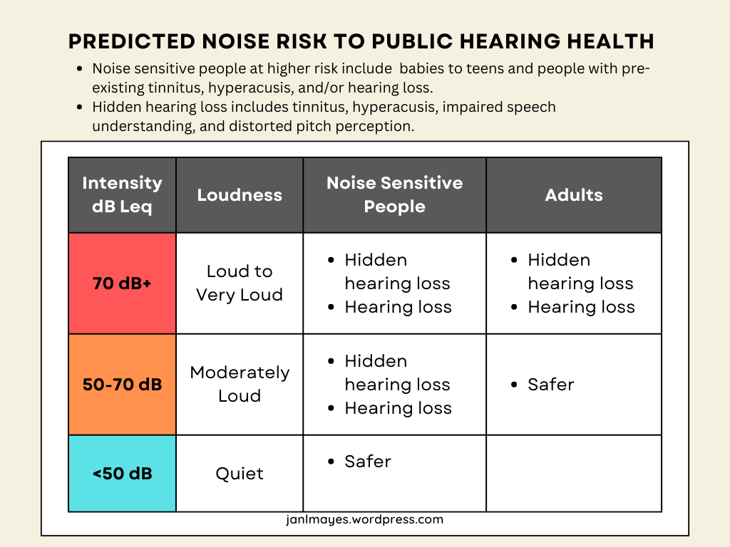 Current public health guidelines sometimes describe listening above 70 dB as “safe” but ignore the widespread damage possible from your brain on noise. This is especially true for noise sensitive populations, likely at risk even below 70 dB. Without mandatory noise control including manufacturer noise emission limits, our ears and brains won’t be protected from noise any time soon.